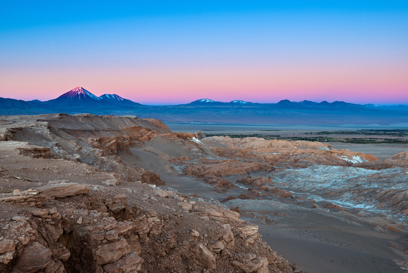 The Atacama Desert is unique: It’s the driest non-polar desert in the world, maybe only raining once every four years. It stretches about 1,600 km (1,000 miles) along the coast of Chile, situated between the Andes and the Pacific Ocean. The soil is comparable to that found on Mars; portions stood in for Mars in the movie, Space Odyssey: Voyage to the Planets. Vast salt flats, active geysers and intense blue lagoons are just a few of the extraordinary features of this region.